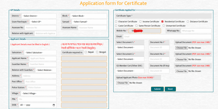 পঞ্চায়েতের এই ওয়েবসাইট থেকে আপনি নিচে দেওয়া যে সার্টিফিকেটগুলি দেখতে পাচ্ছেন এগুলির মধ্যে আপনি যেটাই আবেদন করুন না কেন, সমস্ত সার্টিফিকেটের সাথে রেসিডেন্সিয়াল সার্টিফিকেট আপনি পাবেন।