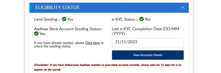 এছাড়া, Pm kisan status check করে আপনাকে দেখে নিতে হবে, আপনাকে যে তিনটি পদ্ধতির লিঙ্ক করতে হবে সেটা গ্রিন আছে কি নেই । সেই গুলি যদি আপনার গ্রিন না থাকে তাহলে নিচে যেনে নিন কিভাবে এই গুলি গ্রিন করবেন ।